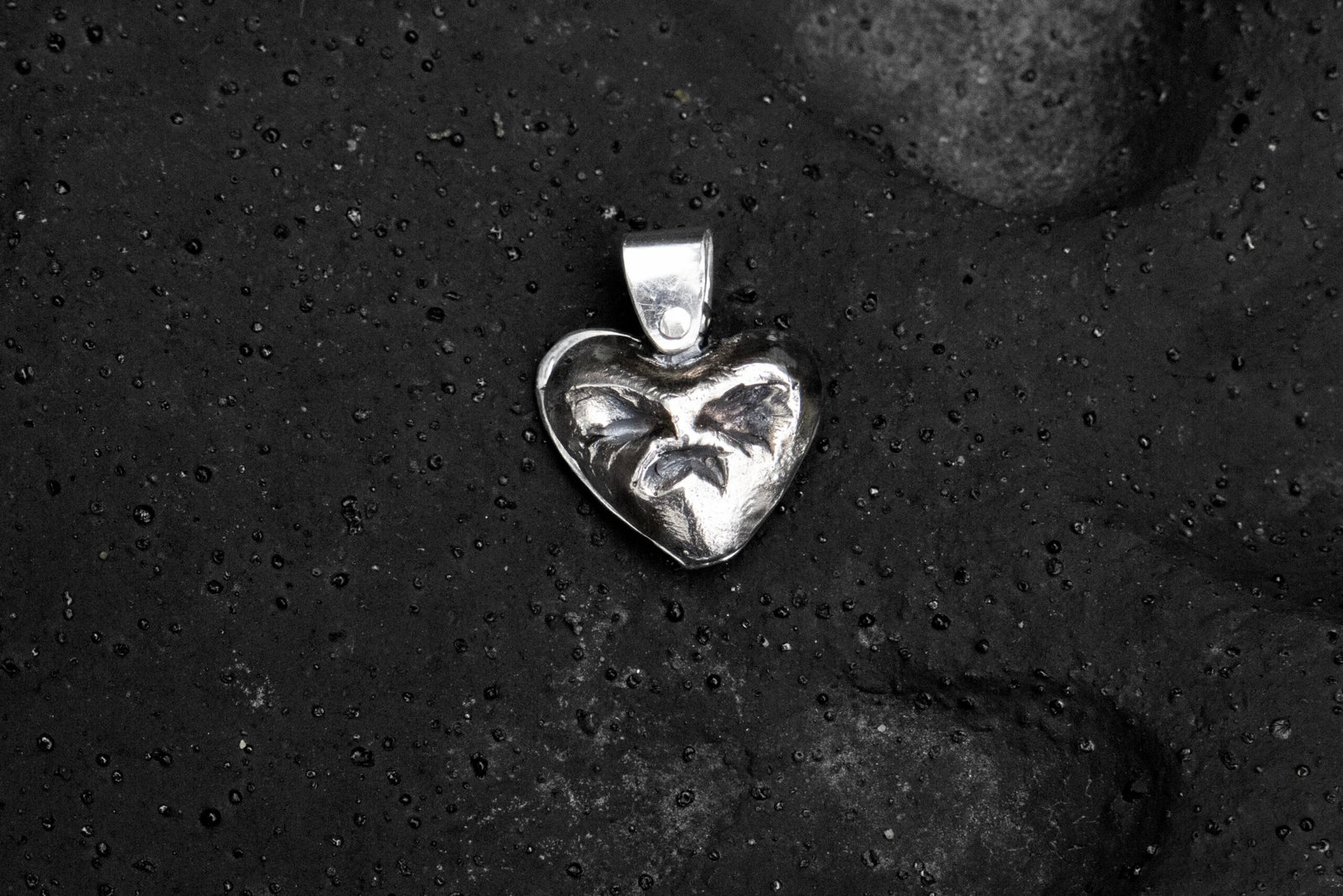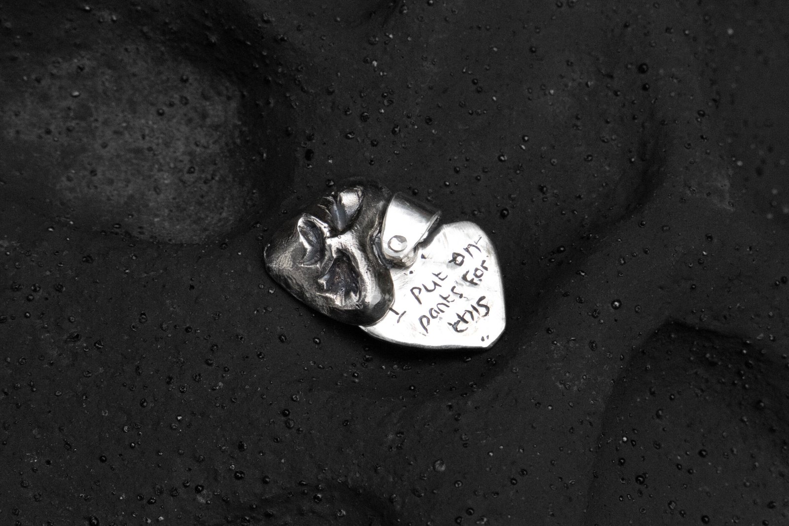 Sterling silver, Double Pendant – one heart, one hidden sentiment. Cast with a quiet, contemptuous (anti) charm.